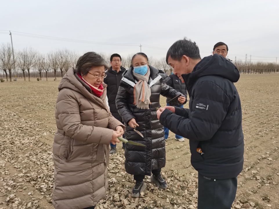 专家在顺义区万亩方查看小麦苗情墒情