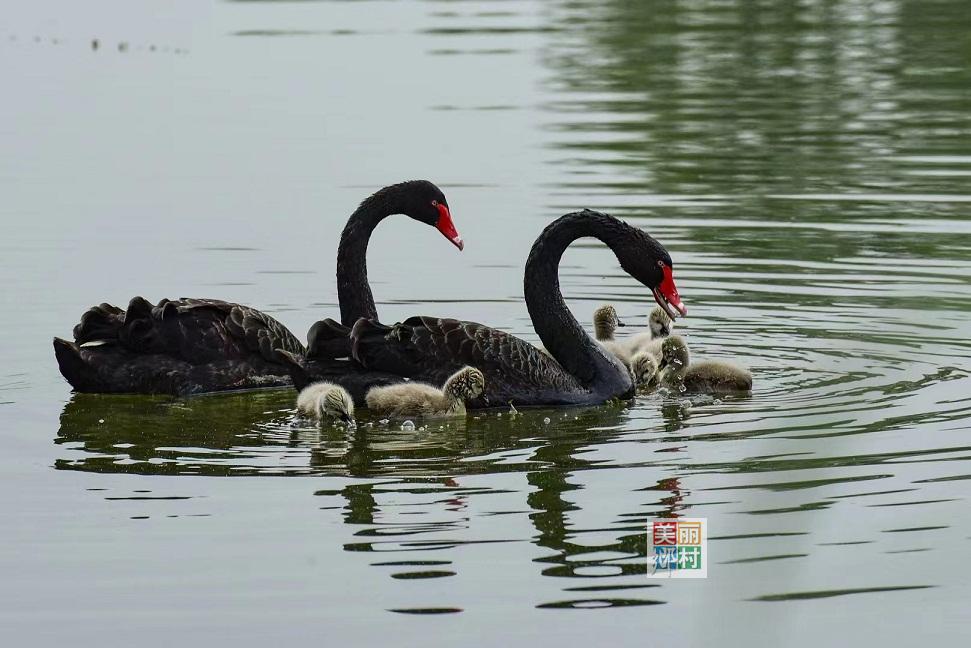 昌平滨河湿地公园天鹅一家嬉水
