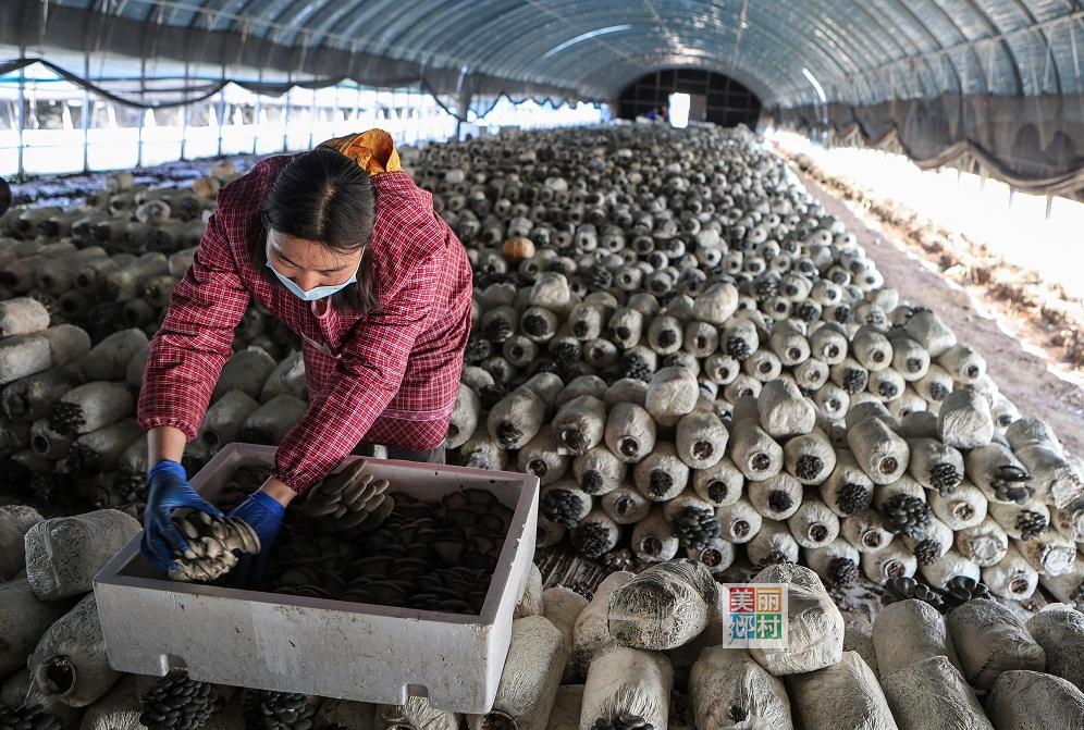 菇香满棚,延庆区沈家营镇下花园村蘑菇长势良好,菇农忙采收
