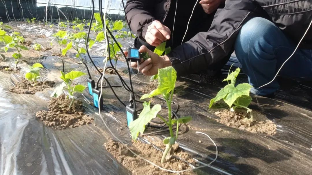 初春时节,走进新建的连体钢架大棚内,工作人员正在抢抓农时移栽春茬黄瓜、西红柿秧苗,棚室内栽植所需的温度、湿度、光照等数据,在土壤检测器上一应俱全。