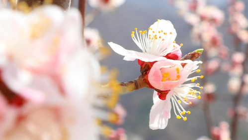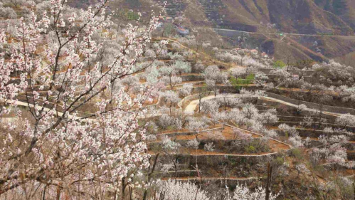 门头沟区雁翅镇苇子水村的山杏花,以其独特的生长环境和超长的花期而闻名。山杏树依山势而种,层层叠叠,从山脚一直延伸到山顶。随着海拔的升高,气温逐渐降低,山杏花也依次开放,花期长达数周,形成了一道独特的“梯田花海”景观。