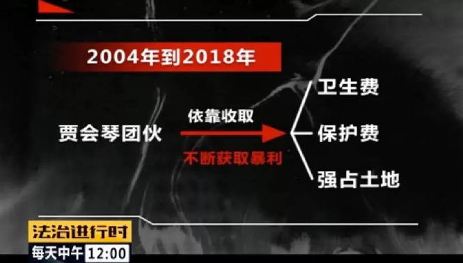 从2004年到2018年,贾会琴团伙依靠收取卫生费、保护费、强占土地等违法手段不断获取暴利,先后敲诈本地村民、外地商户、游商100多家,目前已经查证属实的敲诈金额高达109万。凭借这一笔笔不义之财,贾会琴成为富甲一方的女土豪,同时凭借宗族成员在村里的影响力,贾会琴开始在孛罗营村有恃无恐。