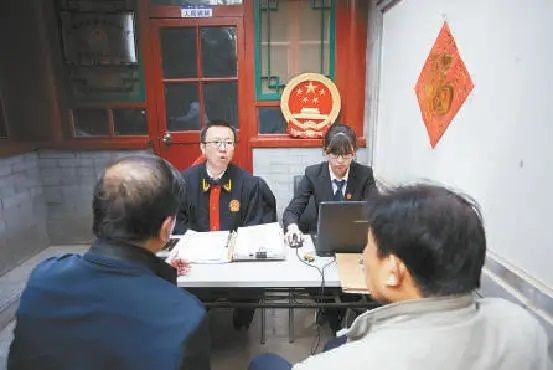 (法官冯晓光(左二)在东四街道调解纠纷)